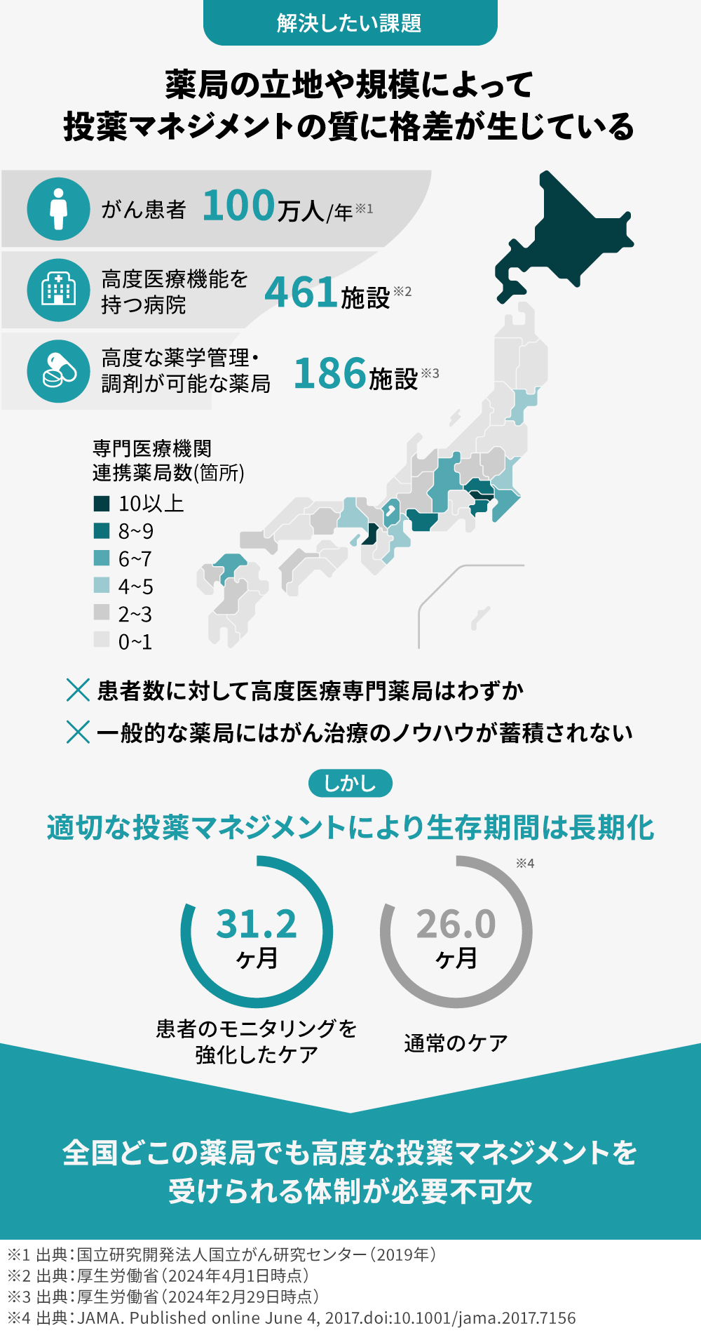 そのため、これまで一部の専門機関にしか蓄積されてこなかった知見やノウハウを、日本全国の薬局・薬剤師に届ける仕組みが必要だと、弊社は考えます。
