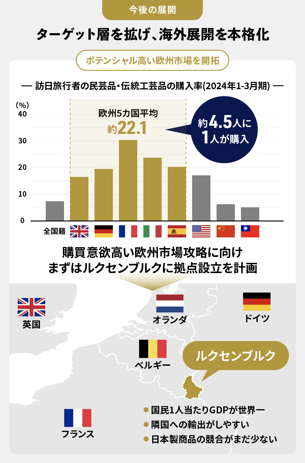 欧州市場の攻略を目指す上で、まずは、ルクセンブルクへの出店を計画しています。