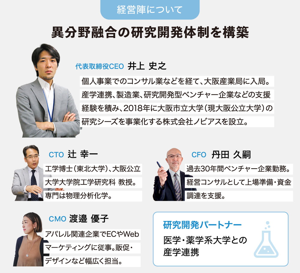 株式会社ノビアスは、大阪公立大学から生まれた革新的なヘルスケアベンチャーです。