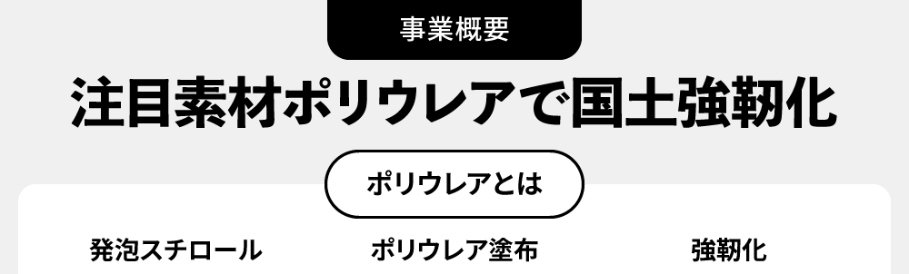 日本は地震や台風などが多い災害国なので、ポリウレアを活用したらどうかとアドバイスを受けことをきっかけにポリウレアの普及に努めることになりました。