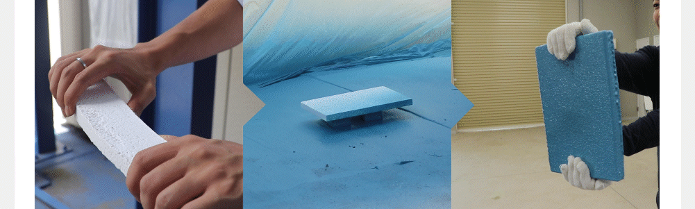 住宅ブロック塀の強化を目的とした自社製品「ポリウレアシールドウォール®」を住宅建材市場に展開していきます。震災時にブロック塀の下敷きとなる事故を防ぐべく、発泡スチロールをポリウレアで強化した次世代の壁です。
