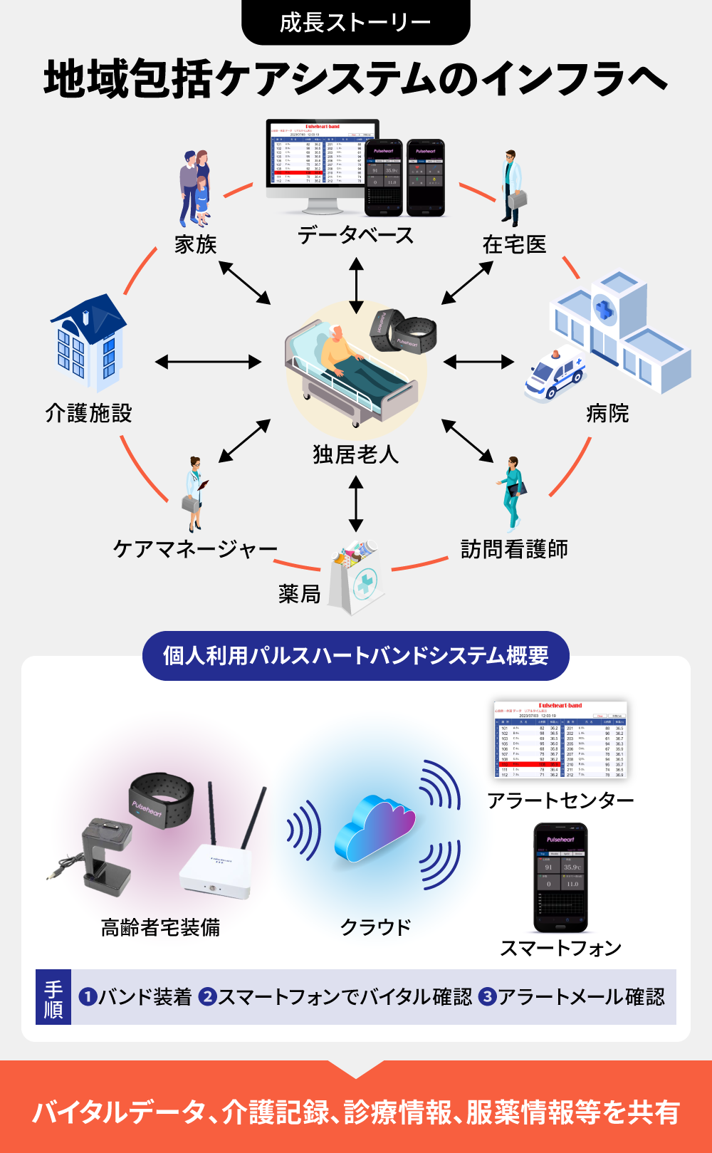 また、「パルスハートバンドシステム」は福祉用具認定(TAISコード:02114-000001)を受けており、福祉用具レンタル事業者やケアマネージャーなどを代理店とした販路拡大も見込んでいます。