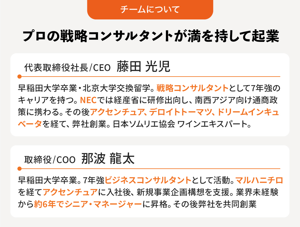 2016年 アクセンチュア株式会社入社。大手企業の各種戦略検討を支援。共同創業者那波と出会う