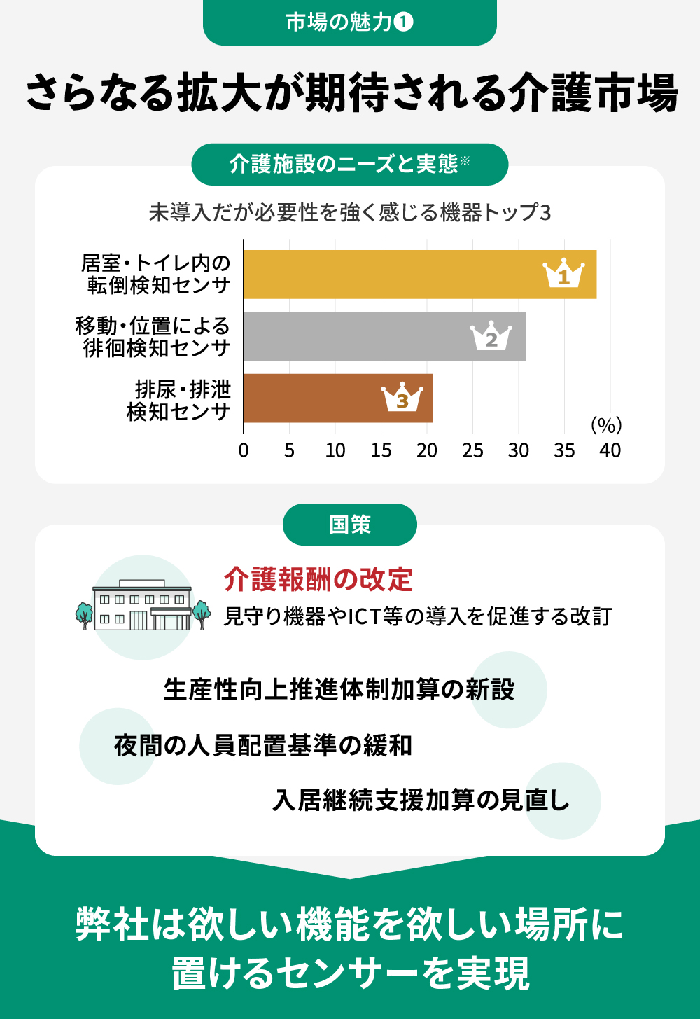 ä»è·ä¿éºå¶åºŠã§2023幎床ã«ããã£ãä»è·è²»çšã¯çŽ11.5å åãŸã§èšãã¿â»ãåœå ã®ä»è·åžå Žã¯é«éœ¢åã®é²è¡ã«äŒŽãããã«æé·ããŠãããšèŠèŸŒãã§ããŸããäžæ¹ã§åæã«å éãã人æäžè¶³ãèæ¯ã«ãåŽåç°å¢ã®æ¹åã«ãã£ãŠé¢è·ãé²ãããšããåããã¿ããããããèŠå®ãã·ã¹ãã ã¯å°æ¥çã«äŒžåŒµæ§ã®é«ãåžå Žã ãšèããŠããŸãã