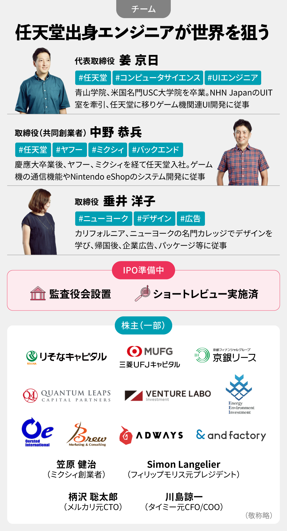 現在、ショートレビュー実施済み、アドバイザリーを踏まえ内部統制を整備、監査役会を設置するなど、IPO準備を進めています。株主としては金融系VCやディープテック分野のVCに加え、ミクシィ創業者の笠原氏や有力な海外投資家も名を連ねており、IPOに向けた強力なバックアップをいただいています。