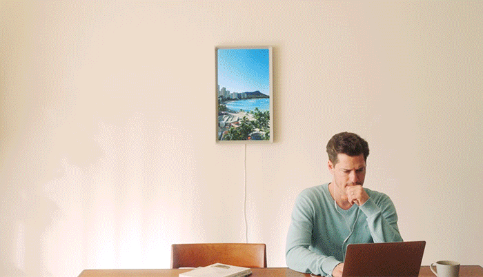 あるとき、部屋がとても閉塞的に感じました。気がつけば、窓からは目の前のアパートしか見えず、開放感がまったくない。そこでパソコンのデスクトップを南国のビーチの写真にしたり、TVに風景DVDを流してみたり、VRヘッドセットも試しましたが、どれもなにか違いました。それから10年の間、閉塞感を解決するアイデアを時々考えていたら、ついに一つの答えが見つかりました。「家の景色は変えられない。それをどうにか変えられるようにすればいいんじゃないか」。窓の形をしていて、壁にかけるだけで世界の風景が広がる。ありそうでなかった、そんな夢のプロダクトで。