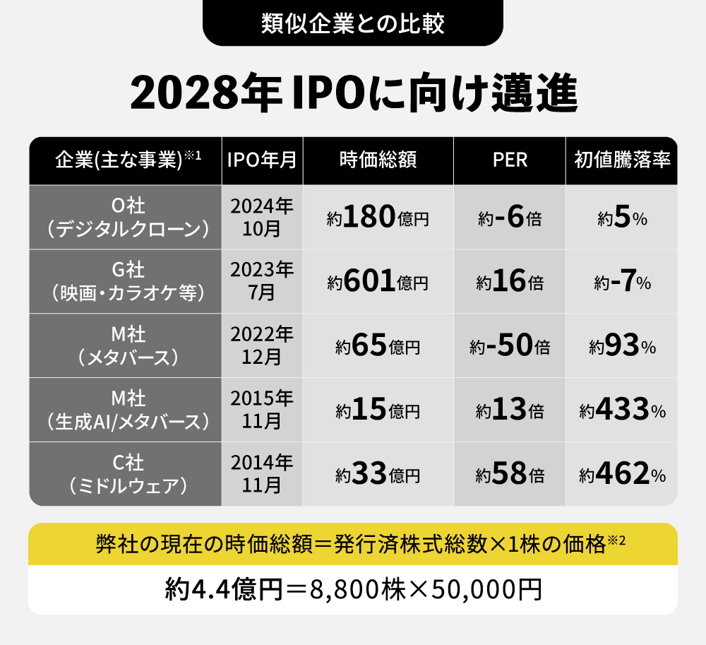 1 ã¿ããã¶ïŒæäŸ¡ç·é¡ãPERã¯ããããå ¬éäŸ¡æ ŒããŒã¹ïŒ