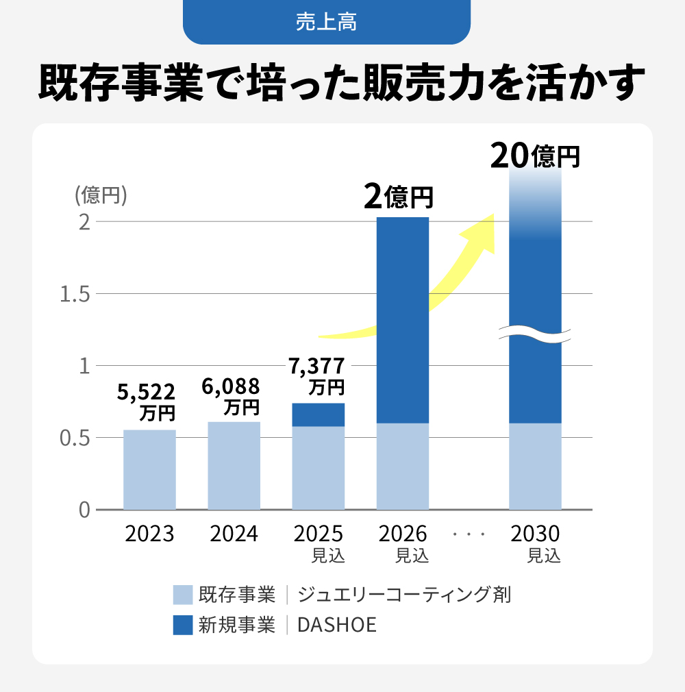 ãŸããåŒç€Ÿã¯ããäžã€ã®äºæ¥ãšããŠãžã¥ãšãªãŒã³ãŒãã£ã³ã°å€ãªã©ã§ãã§ã«å®å®ãã売ãäžãããããŠããŸããããããæ¢åäºæ¥ã§å¹ã£ããããã¯ãŒã¯ããDASHOEãã®è²©å£²ã«æŽ»çšã§ãããšèããŠããŸãã