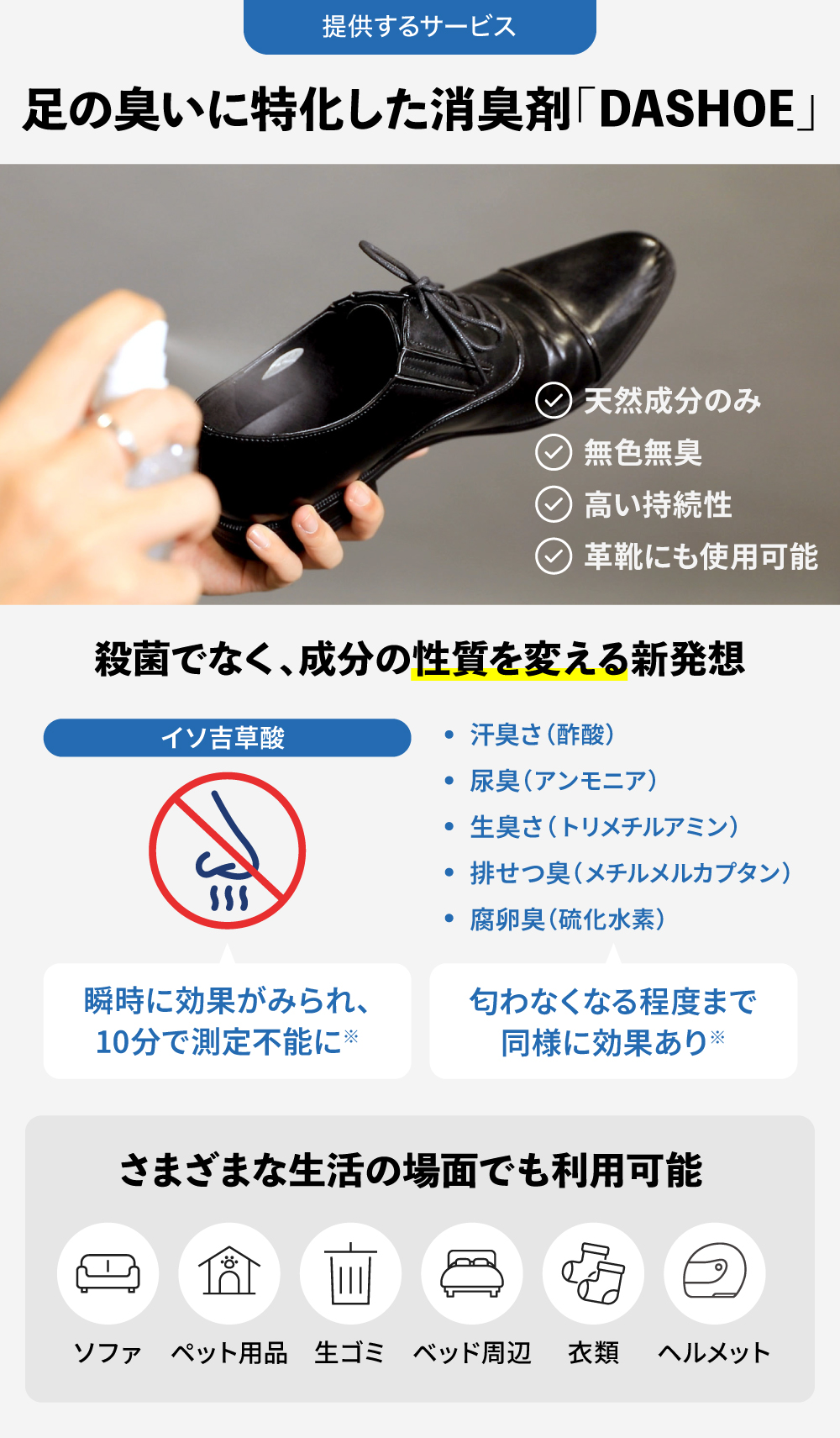 ãDASHOEãã¯ãè¶³ã®èãã®åå ã®äžã€ãã€ãœåèé žããæ¶ãå»ãããšã«æåããæ¶èå€ã§ãã