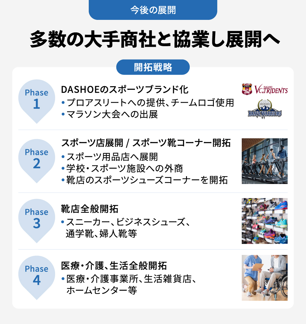 ãã®ããã«ã忥çéèªã«åºåãæ²èŒããDASHOEãã®ååãå šåœã«åºããããšãç®æããŸããäžå°èŠæš¡ã®å°å£²æ¥è ãžã®å±éã«ãããŠããå°å£²åºããå瀟ãžã®åããããšãããå瀟ã«ãšã£ãŠç¡èŠã§ããªãç°å¢ãäœãåºãããšã§ç©æ¥µçãªå±éãã¯ãããŸãã
