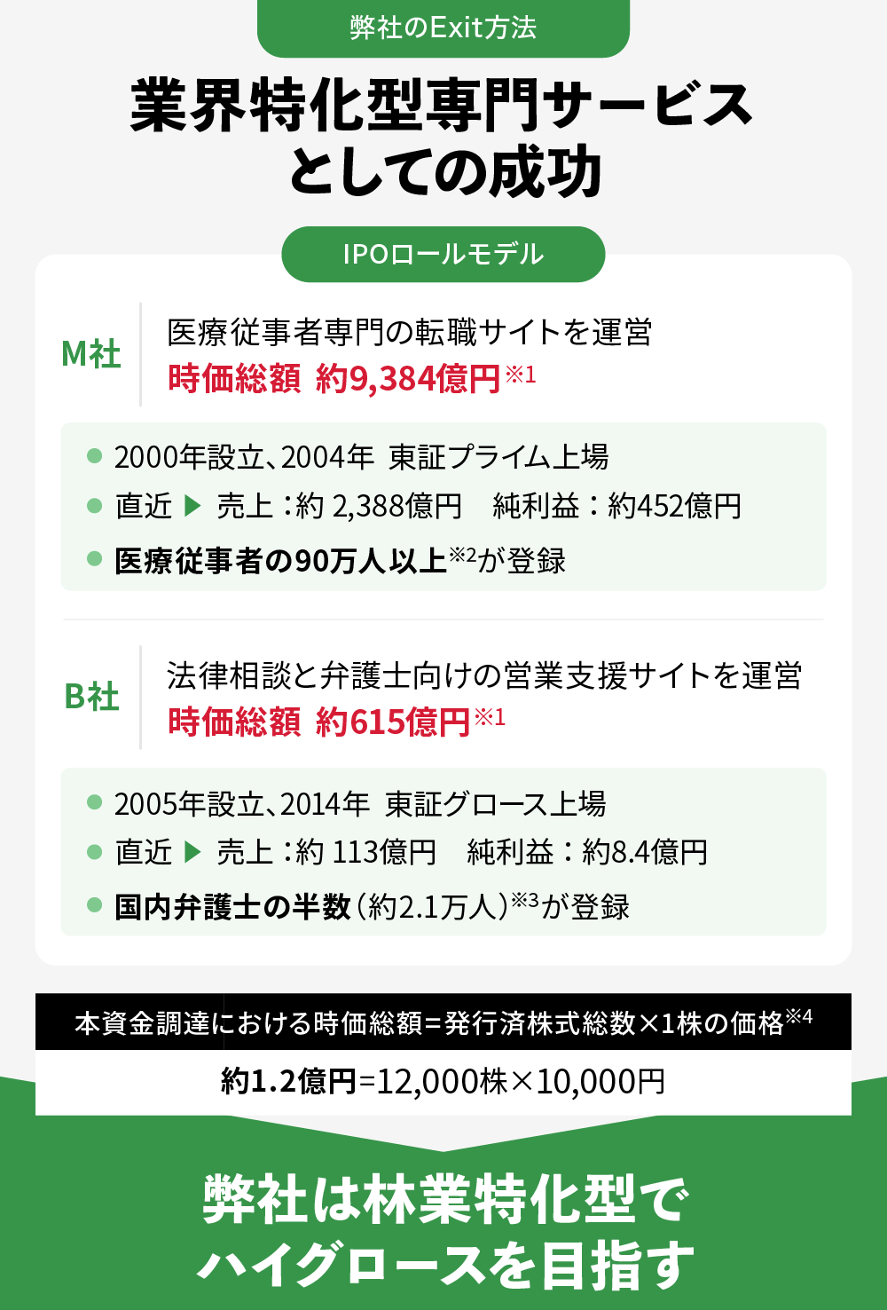 この度の資金調達を機に人材紹介業の免許も取得して収益性を高めることと共に、地球環境対策に直結している林業界を目指す人材を増やしてくれることに私は期待をしています。