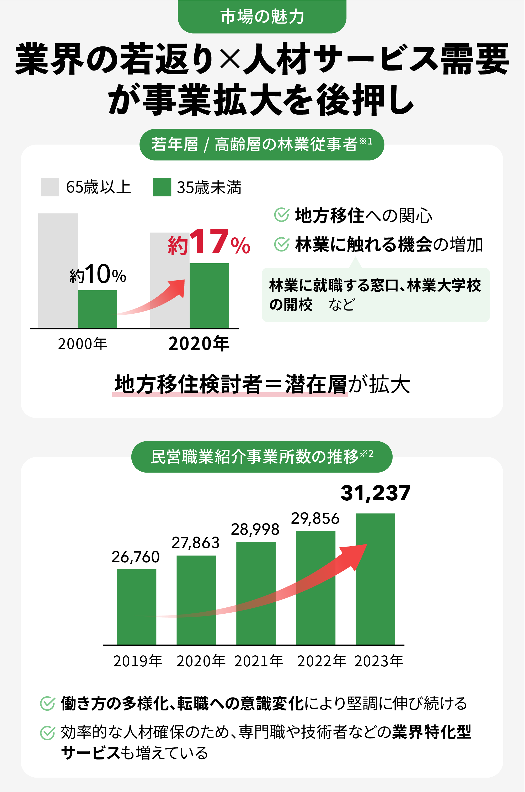 さらに、上記以外からの収入源確保に向けた取り組みも進行中で、今後は有料人材紹介事業や採用代行事業のほか、林業特化のECサイトの立ち上げなども予定しております。