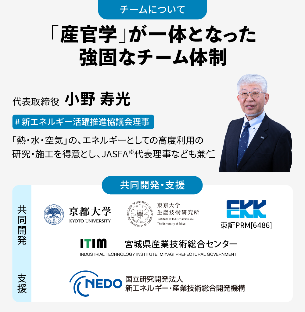åœç«ç ç©¶æ©é¢ã§ããNEDOããã®æ¯æŽã倧ããªåŒ·ã¿ã§ããæ¬äºæ¥ã¯2020幎床ã®ãæŠç¥ççãšãã«ã®ãŒæè¡é©æ°ããã°ã©ã ãæ¡æããäžå°ã»ã¹ã¿ãŒãã¢ããè³ãåè³ãªã©ãéçºè³éã®å©æãã¯ãããããã¯ãŒã¯ãããŠããŠã®æäŸãªã©å¹ åºãæ¯æŽãåããŠããŸãã