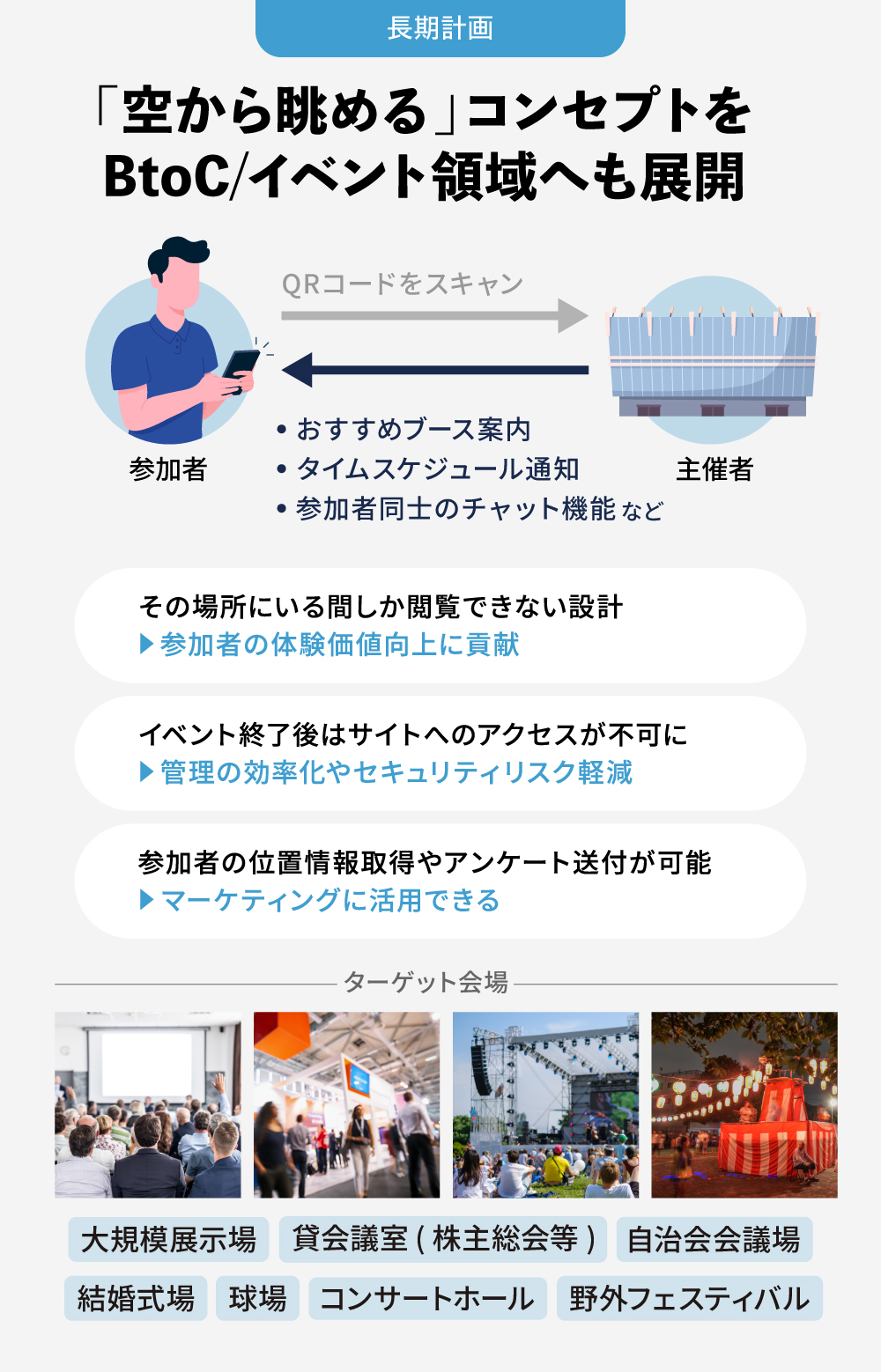 将来的には、BtoC領域への事業領域拡大を目指してイベント主催者と参加者が体験を共有できるスマホアプリを開発中です。