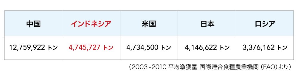 その中でもアジア圏、とりわけインドネシアの漁獲量は中国に次いで世界第2位を誇ります。