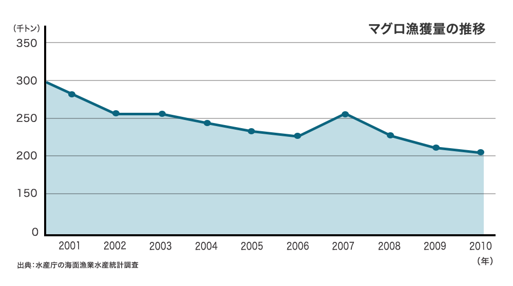私たちが日々食している「マグロ」。日本は世界のマグロ市場の約2割を消費し、刺身用のマグロだけでも年間40万トンを消費するなど、世界ナンバー1の消費大国です。(WWF調べ)