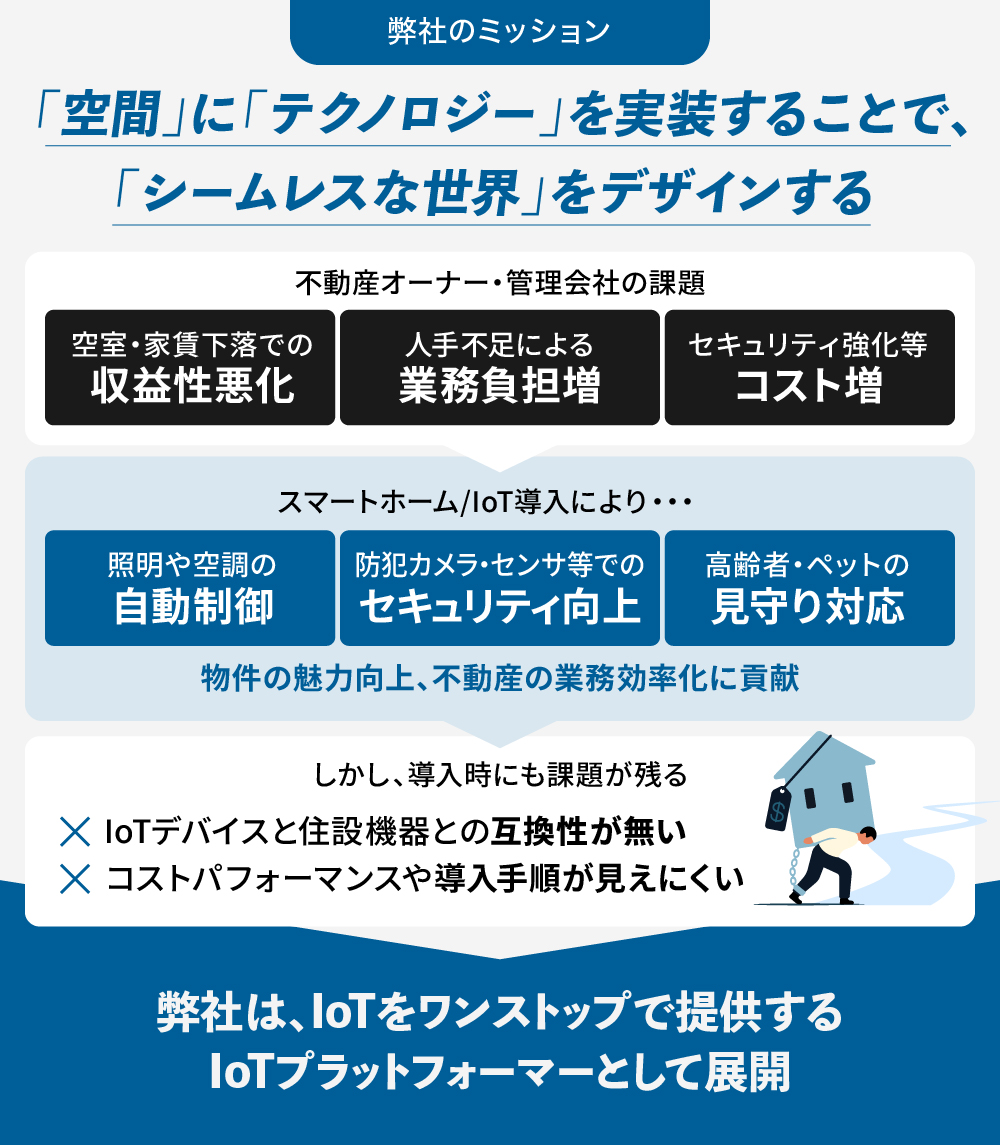 IoTが日常の一部として自然に根づく社会を目指し、当社は技術・導入・運用すべてを完結できるプラットフォーマーとして、日本の暮らしを次のフェーズへと導いていきます。