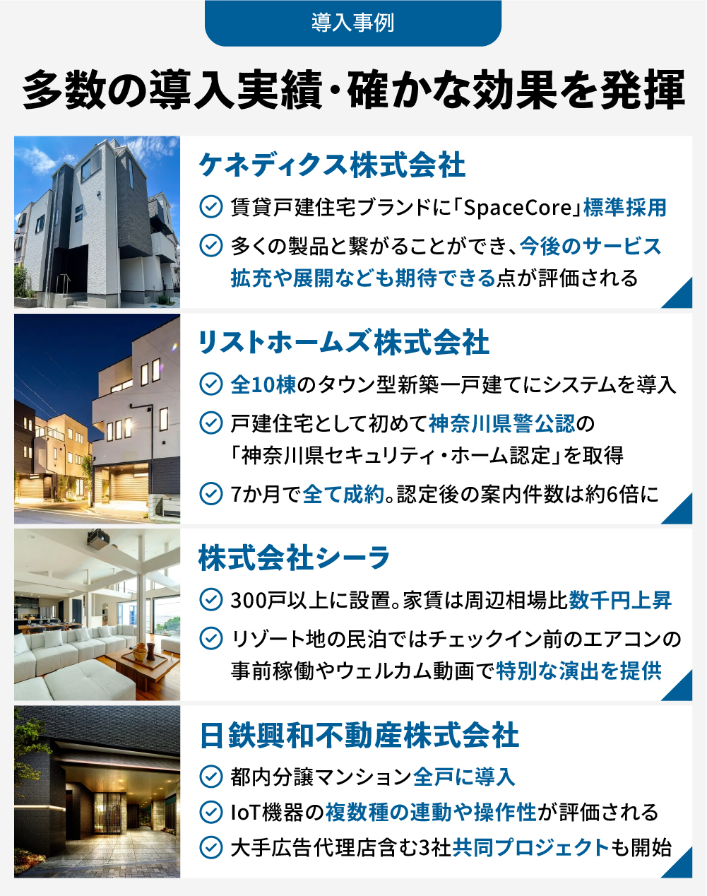貴社のスマートホームサービス「SpaceCore」は、IoT技術を駆使した住まいの革新的なプロダクトとして、多くの不動産会社や入居者様で利用されていますが、単なる快適な暮らしを提供するだけでなく、貴社自身が不動産DX業界の推進者として貢献されている結果だと思います。