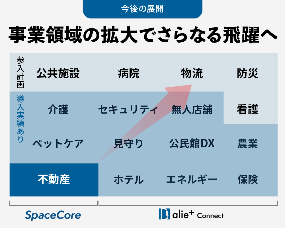 2024年10月、「SpaceCore」サービスの最適化を通じて、賃貸住宅・分譲住宅、それぞれの業界課題に特化したソリューションの提供を開始しました。これにより新規導入が加速し、今期の売上は前期比約1.3倍の約12億円の達成を目指しています。さらに、非住宅領域への展開も本格化しており、現在は、物流業界や防災分野でのIoT提供の協議を進めています。住空間にとどまらず、社会インフラ全体へと領域を広げながら、IoTプラットフォーマーとしての地位確立を目指しています。