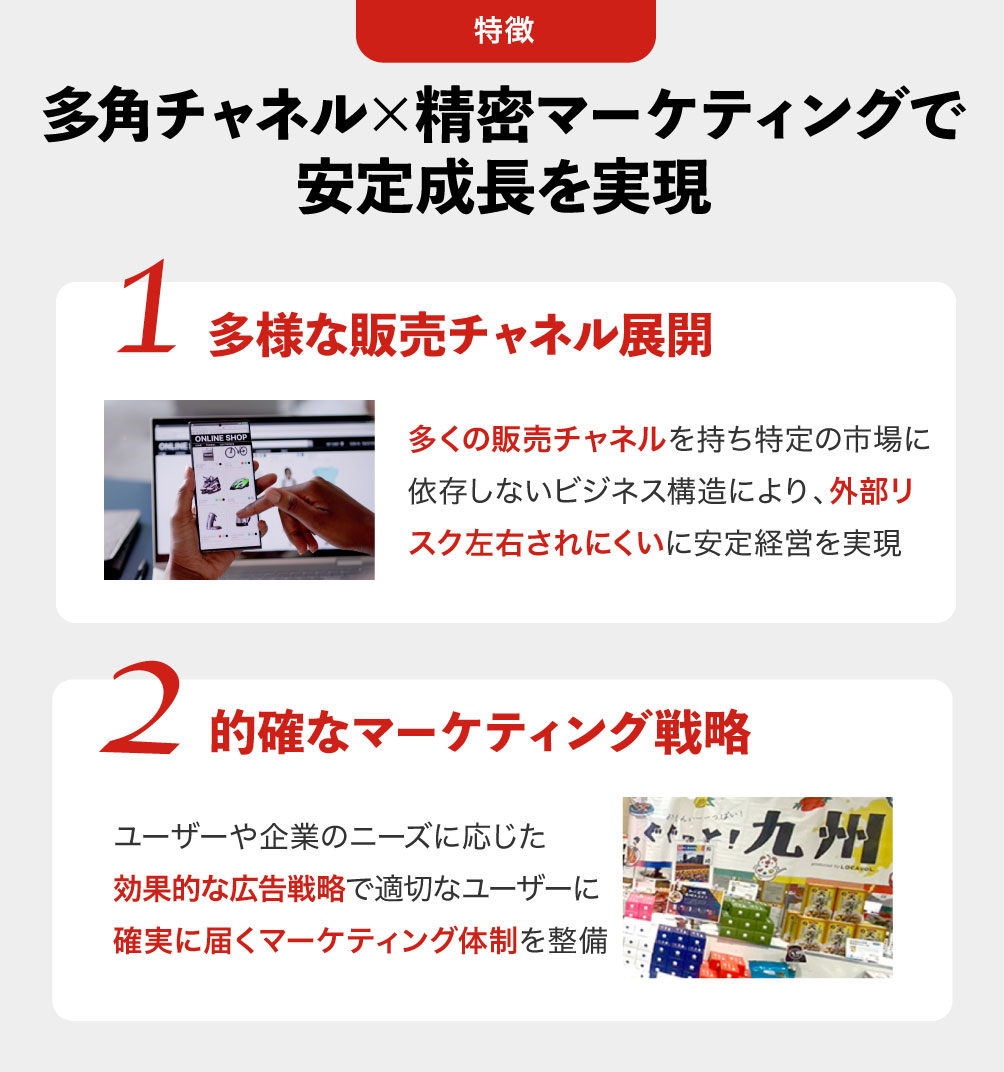 åŒç€Ÿã¯å°åã®åç£åãå±ããããã«ãã®ããECãå°åãã©ã³ãæ¯æŽãäŒæ¥åãçŠå©åçãµãŒãã¹ãšã倿§ãªè²©å£²ãã£ãã«ãå±éããŠããŸãããããã®ãµãŒãã¹ã¯ããããç°ãªã顧客ããŒãºãæµéãã£ãã«ã«å¯Ÿå¿ããªããã軞ã¯åžžã«ãå°åã®åç£åãæé©ãªåœ¢ã§å±ãããã©ãããã©ãŒã ãã§ããç¹ãå ±éããŠããŸãã