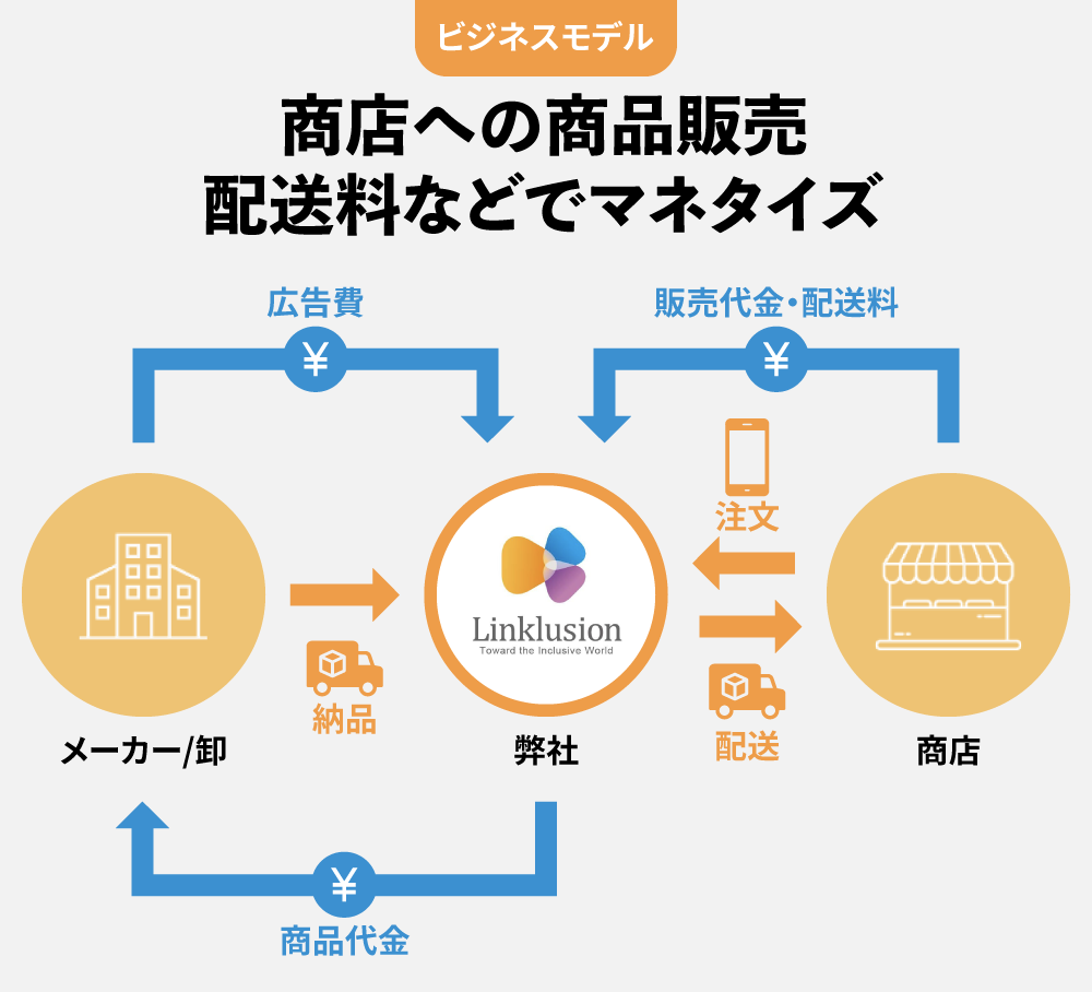リンクルージョン株式会社が手掛けるコマース事業は、地方に日用品や食料等の物資を滞りなく届け、小売店の所得維持など、地方で生活する方々の”ライフライン”になっています。