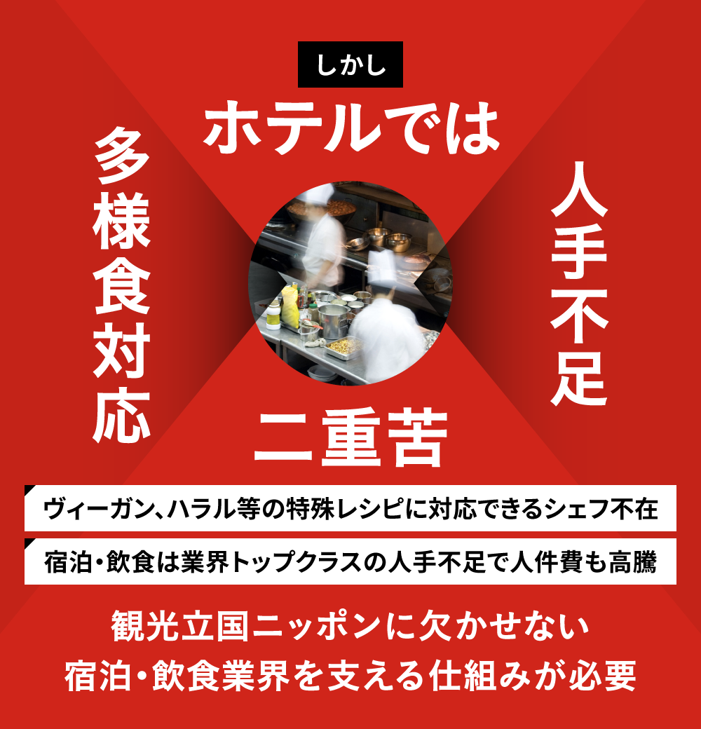 ããã§ãæ¥æé·ããã€ã³ããŠã³ãåžå Žãæ±ããã倿§ãªé£ãžã®æªå¯Ÿå¿ããšãæ·±å»ãªäººæäžè¶³ããšããäºå€§èª²é¡ã«çç®ãç°å¢è² è·ã®äœãç§ãã¡ã®ãŽã£ãŒã¬ã³ã»ãã©ã«å¯Ÿå¿å·åé£åã¯ããã®èª²é¡ãåæã«è§£æ±ºããçŸå Žã®åçæ§åäžã«è²¢ç®ã§ãããœãªã¥ãŒã·ã§ã³ã§ãã