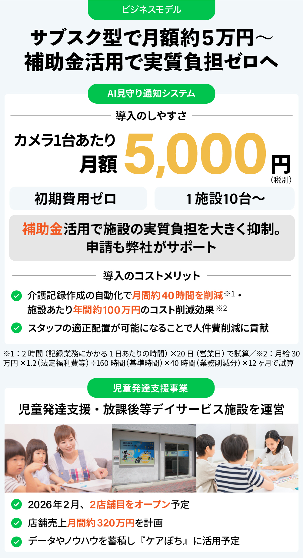 この課題を解決する、AIによる見守り通知システムや業務負荷の軽減は社会的意義も大きい事業だと認識しています。