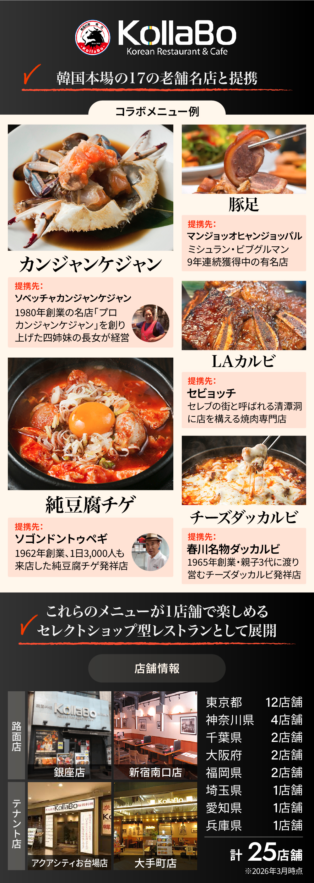 現在は全国に25店舗を展開し、本場の韓国名店の味を日本で体験できるレストランとして店舗網を拡大しています。