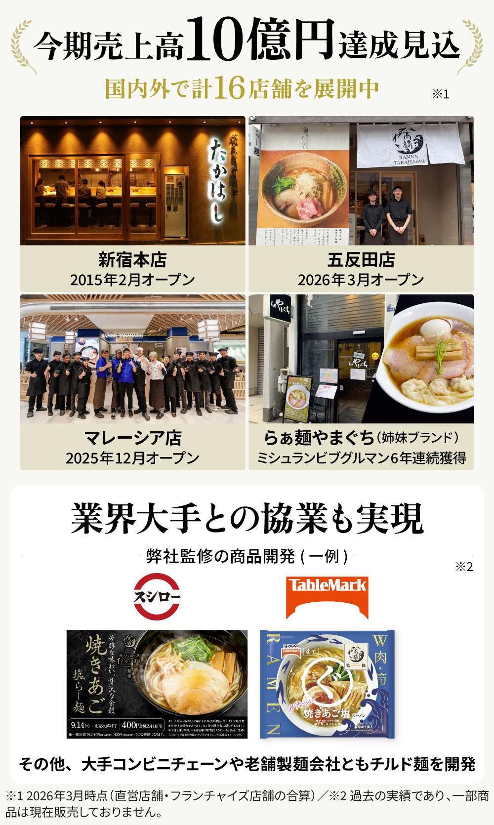 幎éçŽ100äžäººã®ã客æ§ã«ãæ¥åºããã ããŠããã嵿¥ãã16æç®ãšãªã仿売äžé«ã¯çŽ10ååã«éããèŠèŸŒã¿ã§ããéå»ã«ã¯ã¹ã·ããŒãããŒãã«ããŒã¯ã倧æã³ã³ãããã§ãŒã³ãèè補麺äŒç€Ÿãšã忥ããåŒç€Ÿãç£ä¿®ããåçš®ååã®è²©å£²ãå®çŸããŠããŸãã