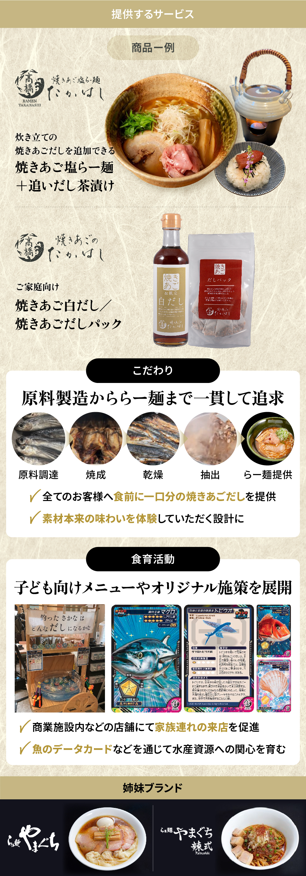 ãŸããæ°å®¿æ¬åºãé座åºãšãã£ãéœå¿åºèã«å ããããŒããµã€ãã忥æœèšå ã®åºèã§ã¯ãåã©ãåãã©ãŒã¡ã³ã»ãããå°å ¥ããããšã§å®¶æé£ãã®æ¥åºãä¿é²ãã客æ°ã®æ¡å€§ã«ã€ãªããŠããŸããããã«ããããããªããŒã¿ã«ãŒãããšåŒã°ãããªãªãžãã«æœçãéããŠãéãžã®çè§£ãæ·±ããæ©äŒãæäŸããã ãæåãæ°Žç£è³æºãžã®é¢å¿ãè²ãé£è²æŽ»åã«ãåãçµãã§ããŸãã
