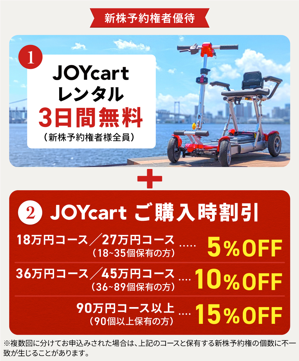 ①「JOY cart」レンタル3日間無料(通常レンタル料金:18,000円(税込・送料込))