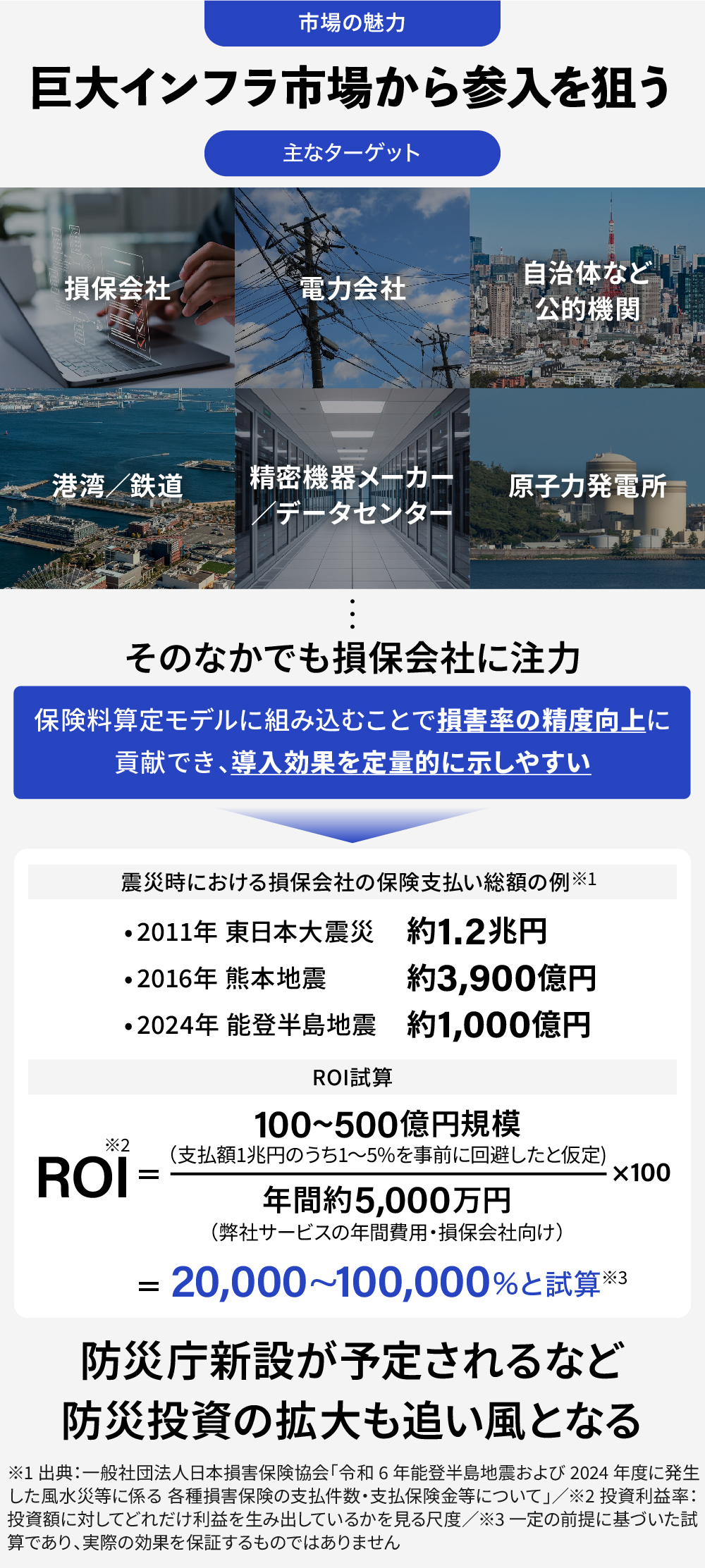 ãŸãã2026幎äžã«ã¯ãé²çœåºãã®æ°èšãäºå®ãããŠããŸãâ»2ãéèŠã€ã³ãã©ãæç®¡ããçåºã暪æããé²çœæè³ã®å éãèŠèŸŒãŸããŠãããé»åã»ä¿éºã«ãšã©ãŸãããè¡æ¿ã»èªæ²»äœåãã®BtoGåžå ŽãèŠéã«å ¥ããŸããåœå SAMïŒæäŸå¯èœåžå ŽïŒã¯800ã1,200ååãTAMïŒç·åžå ŽïŒã¯4ã6å åãšè©Šç®ããŠããŸãâ»1ã