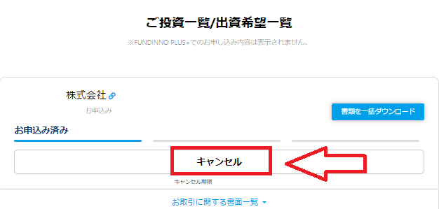 キャンセルをご希望の場合は、FUNDINNOマイページ>ご投資一覧/出資希望一覧(下記URL)のキャンセルボタンよりお手続きください。