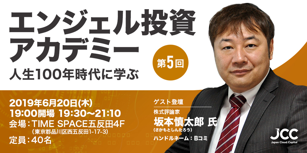 第5回エンジェル投資家セミナー第5回エンジェル投資家セミナーは、ゲストに「Bコミさん」こと坂本慎太郎さんをお迎えし、今年の株式市場について、また、坂本さんが「資産運用としても株式投資としても魅力的」とする未公開株投資についてお話いただきました。ご本業がトレーダーである坂本慎太郎さんは、株式の評論家としても著名であり、ラジオ・セミナーのご登場は年間210本以上という人気ぶりです。著書には『朝9時10分までにしっかり儲ける板読み投資術』『脱イナゴでしっかり儲ける20銘柄バスケット投資術』などがあり、最新刊『20年勝ち続ける伝説のトレーダーに10倍大化け株の見つけ方をこっそり教わってき...