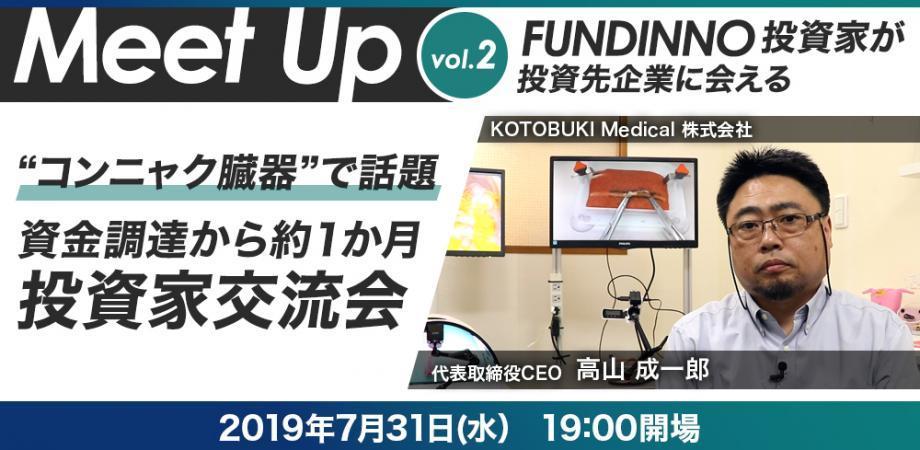 調達会社と投資家の交流の場「FUNDINNO MeetUP」の第2回は、FUNDINNOにおける今までの最高の資金調達額を達成したKOTOBUKI Medical株式会社の株主向け事業説明会でした。